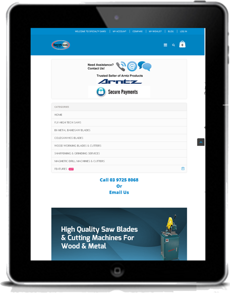 Specialty Saws is a Magento ecommerce site with custom subpages designed to conform with the specific instructions and requirements of the client. To date, the website has over 200+ product listings and features multiple payment gateways, custom sliders, newsletter signup and so much more. WebRight also provides ongoing SEO service for the website and currently enjoys an average of 1,025 sessions per week.